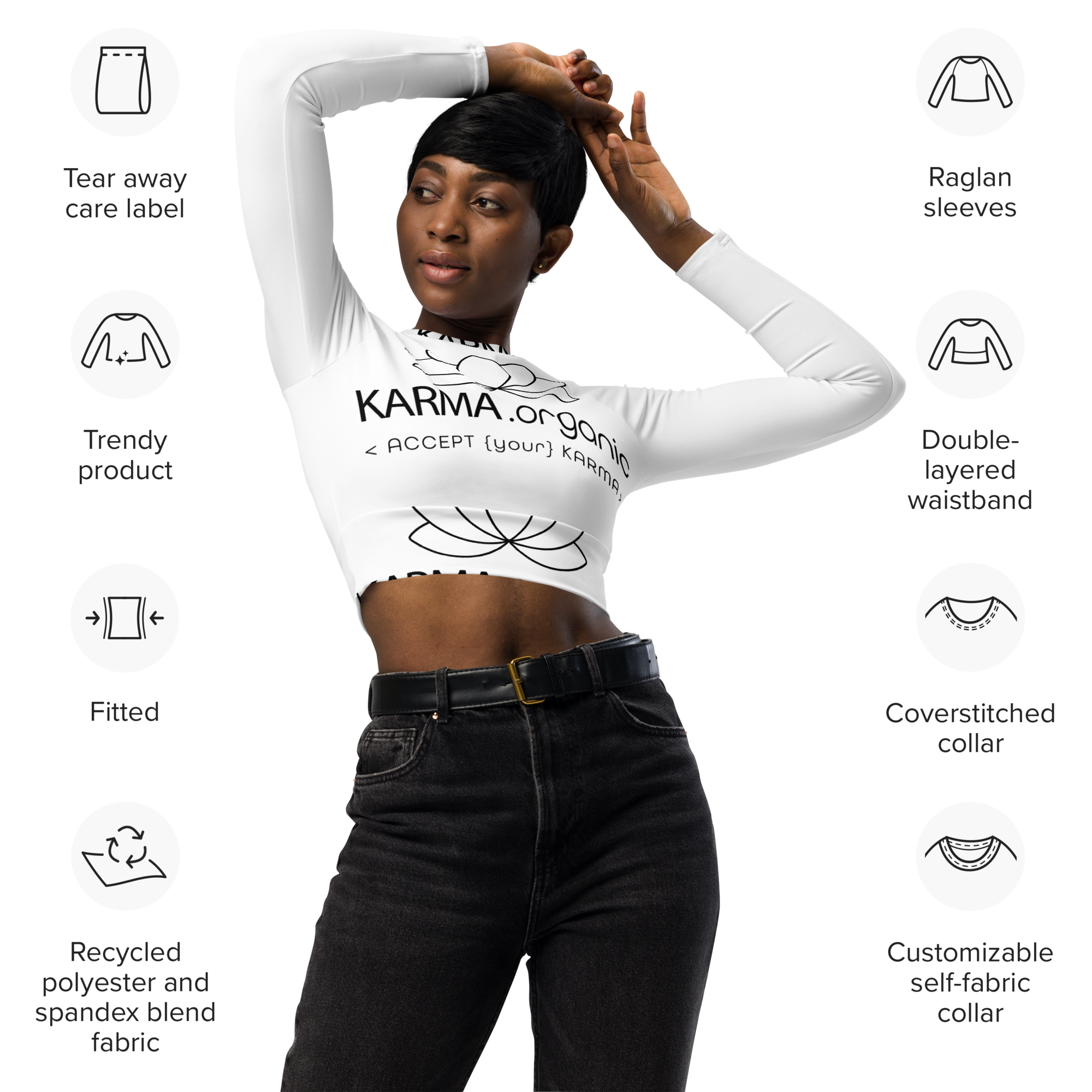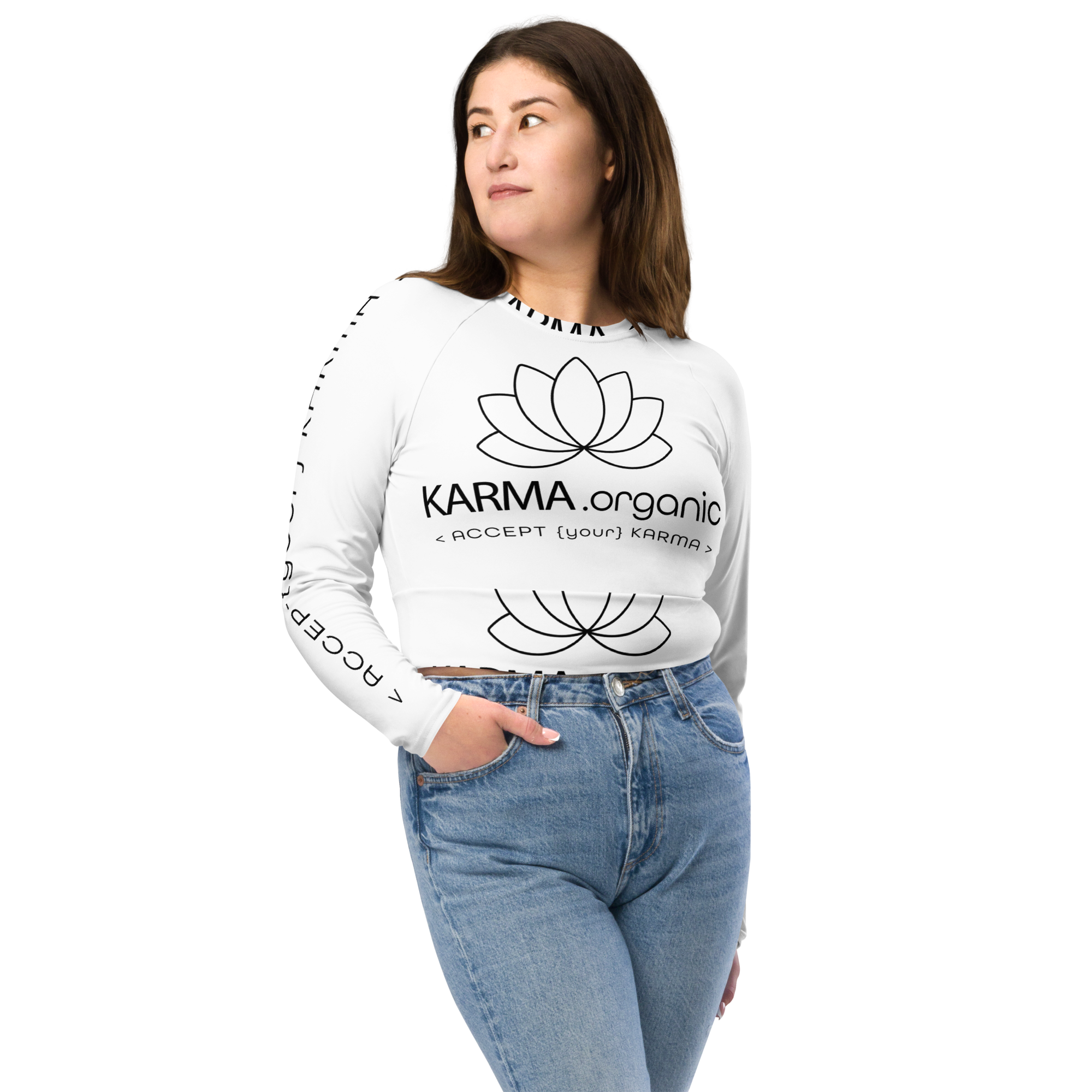 This long-sleeve crop top is made of recycled polyester and elastane, making it an eco-friendly choice for swimming, sports, or athleisure outfits. The crop top has a tear-away care label and a wide, double-layered waistline band for a comfortable fit.